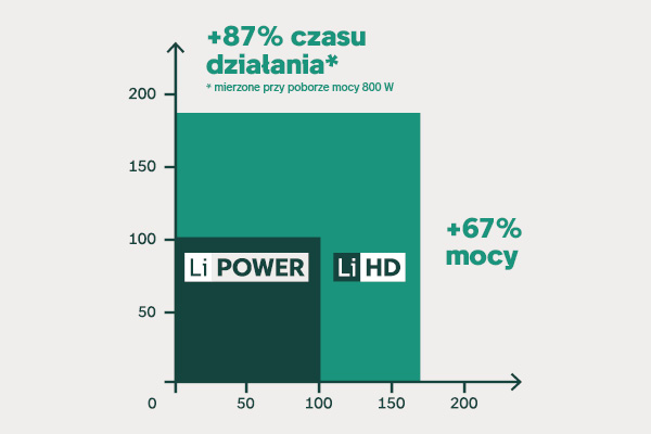 Akumulatory LiHD mają jeszcze więcej tego, co najlepsze. Ogniwa zawierają więcej materiału aktywnego i jest on bardziej zagęszczony niż w ogniwach wcześniejszych technologii akumulatorowych. Pozwala to osiągnąć znacznie większą moc w akumulatorze, który jest tylko nieznacznie większy. Dla najlepszych rezultatów i maksymalnego komfortu.